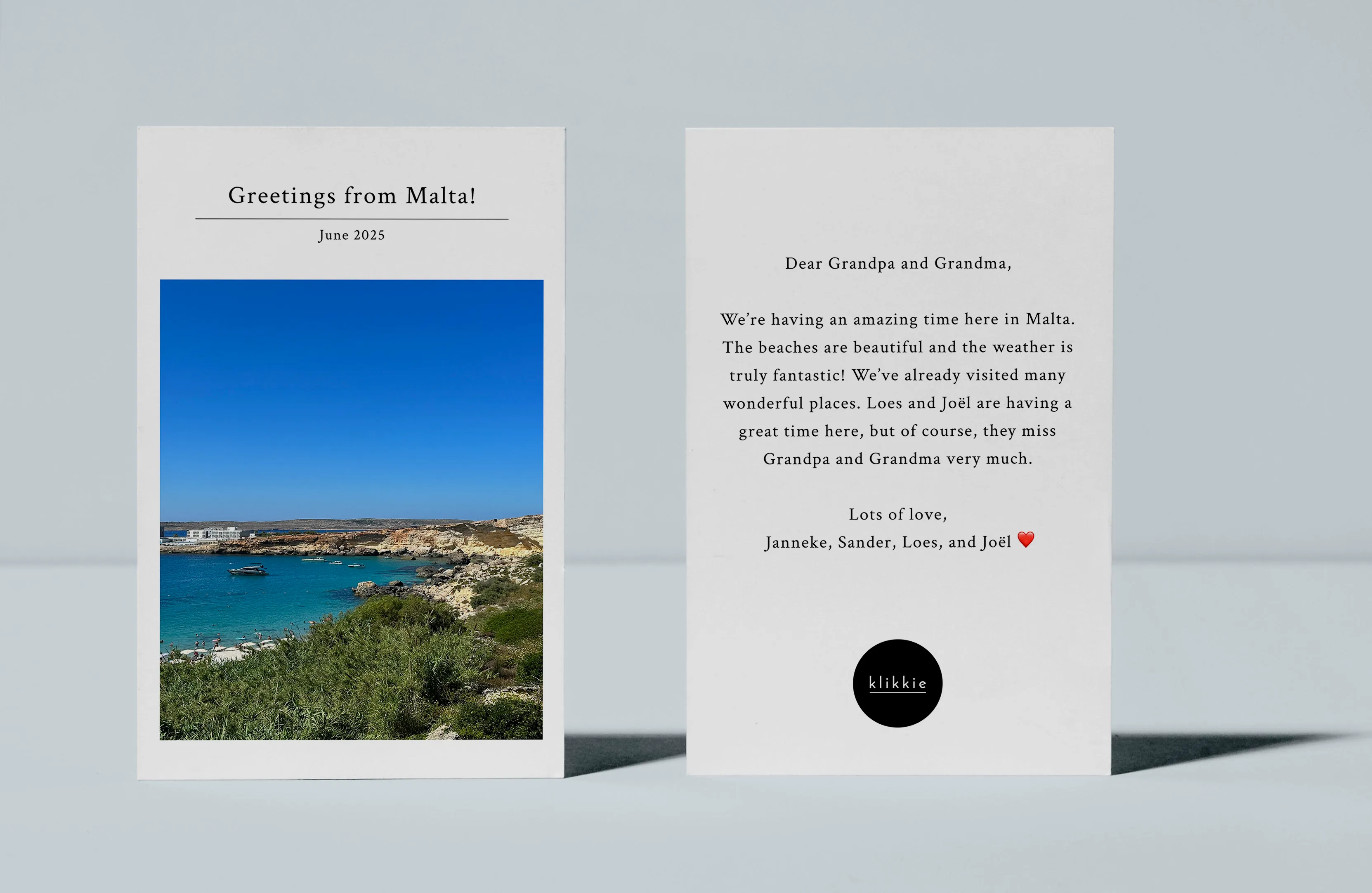 Versende diese Fotokarte von deinem Urlaubsort! Lade ein schönes Urlaubsfoto hoch, wähle dein Lieblingslayout und gebe die Adresse des Empfängers in der App an. Innerhalb weniger Tage erhalten deine Liebsten die schönste personalisierte Karte an ihre Haustür!