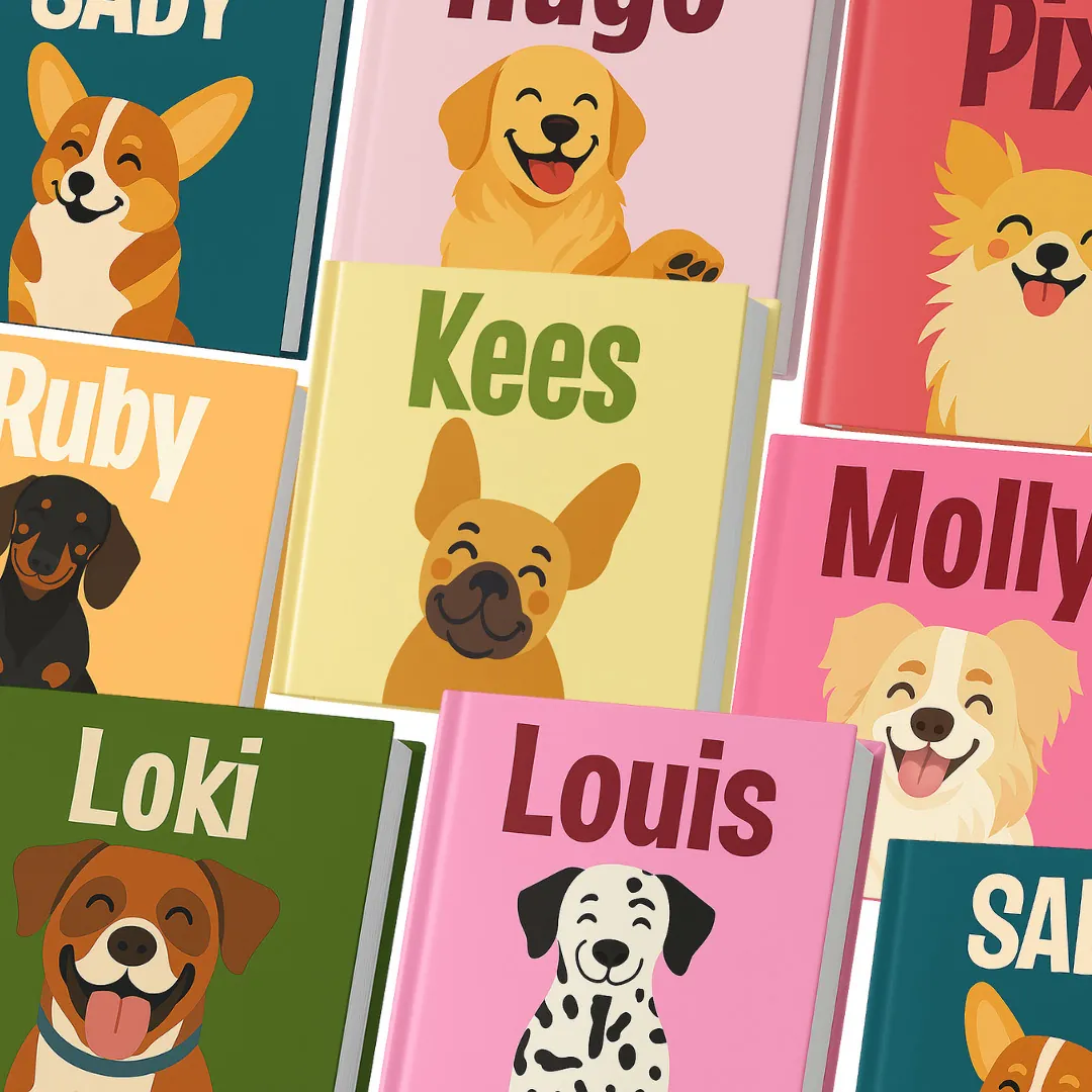 Demnächst erhältlich! Haustierbücher. Wähle aus 19 verschiedenen Hunderassen für dein Cover. Erstelle ein wunderschönes Fotobuch mit den besten Bildern deines Hundes. Elegantes Design und lebendige Farben machen dein Buch zu einem echten Hingucker.