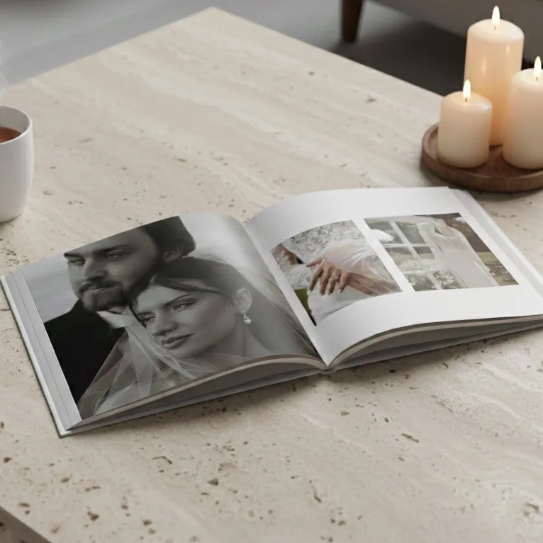 Verwandle deine Lieblingshochzeitsfotos in wenigen Minuten in ein atemberaubendes, personalisiertes Hochzeitsfotobuch. Unsere 22 individuellen Seitenvorlagen helfen Paaren dabei, schnell ein stilvolles, hochwertiges Hochzeitsfotobuch zu erstellen. Erlebe deine Trauung und deine Hochzeitsfeier noch einmal mit lebendigen Farben und einem klassischen, professionellen Finish.