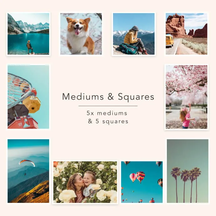 Mit dem klassischen Medium & Squares Set erhältst du 5 mittlere und 5 quadratische Fotos. Die Fotos sind von hoher Qualität mit leuchtenden Farben und scharfen Details, wodurch sich jedes Set wie ein Geschenk anfühlt! Deine Fotos werden superschnell und kostenlos zu dir nach Hause geliefert, damit du endlich deine schönsten Fotos genießen kannst.
