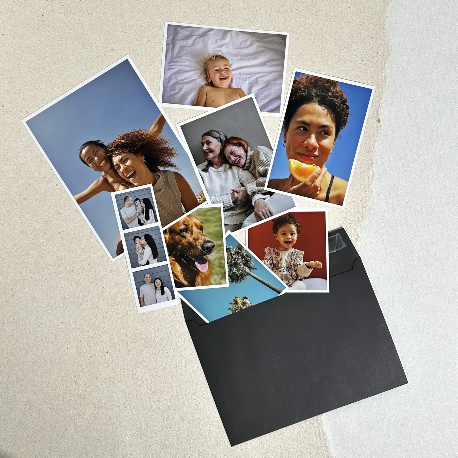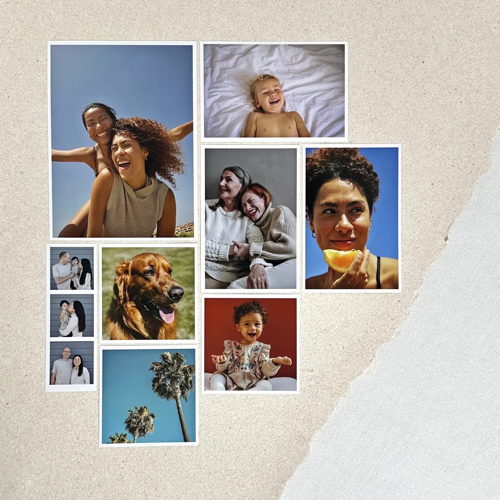 Wenn du dich für das Original-Set entscheiden, erhältst du alle vier unserer Formate: Medium-, Quadrat- und XL-Format sowie den süßen Foto-Strip! Die hochwertigen Fotos mit den kultigen weißen Rändern bringen deine Fotos zum Strahlen und dank der schnellen, kostenlosen Lieferung ist dein Fotoset im Handumdrehen bei dir zu Hause!