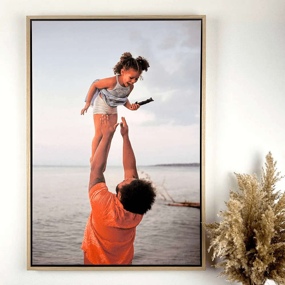 Die gerahmte Premium-Leinwand - XL besticht durch ihre leuchtenden Farben, die deine besten Fotos und Porträts zum Leben erwecken! Darüber hinaus verleiht die schwarze Innenseite des Rahmens der Leinwand eine schöne Tiefe und einen schönen Kontrast. Der robuste Holzrahmen ist in den Farben Schwarz und Eiche erhältlich und bei Lieferung aufhängefertig!